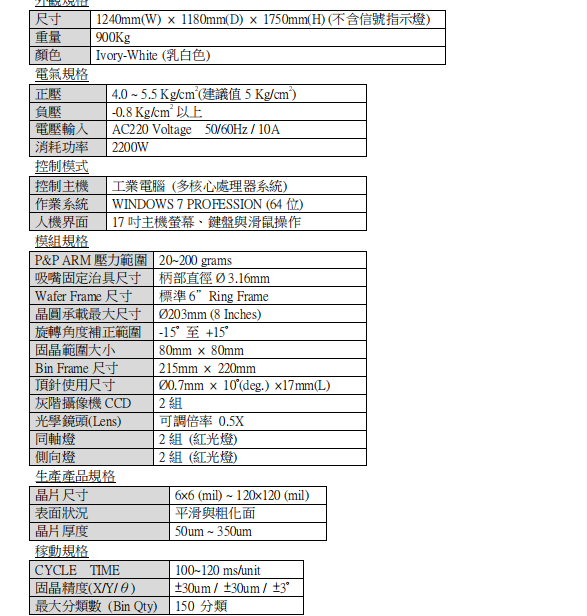 用途在于,依据mapping资料,将黏贴于蓝膜上之元件依指定号分别取出,并黏贴于另一蓝膜上。