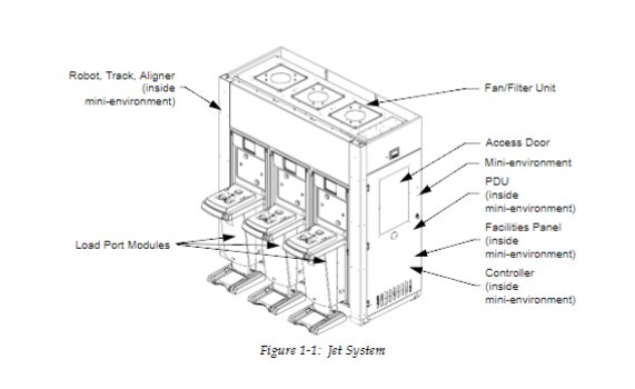 BrooksAutomationJetTM系统是一个设备前端模块(EFEM)。它是工厂物料运输系统与工艺工具之间的连接点。 Jet系统是一种兼容SEMI标准的接口系统,专为手动、AGV、PGV或OHV自动化装载载具而设计,这些载具内装有晶圆或其他材料,正等待水平转移。它是一个自成一体且完全集成的气载转移系统,配备有机器人、对位装置、装载端口以及安装在整体框架上的控制系统。